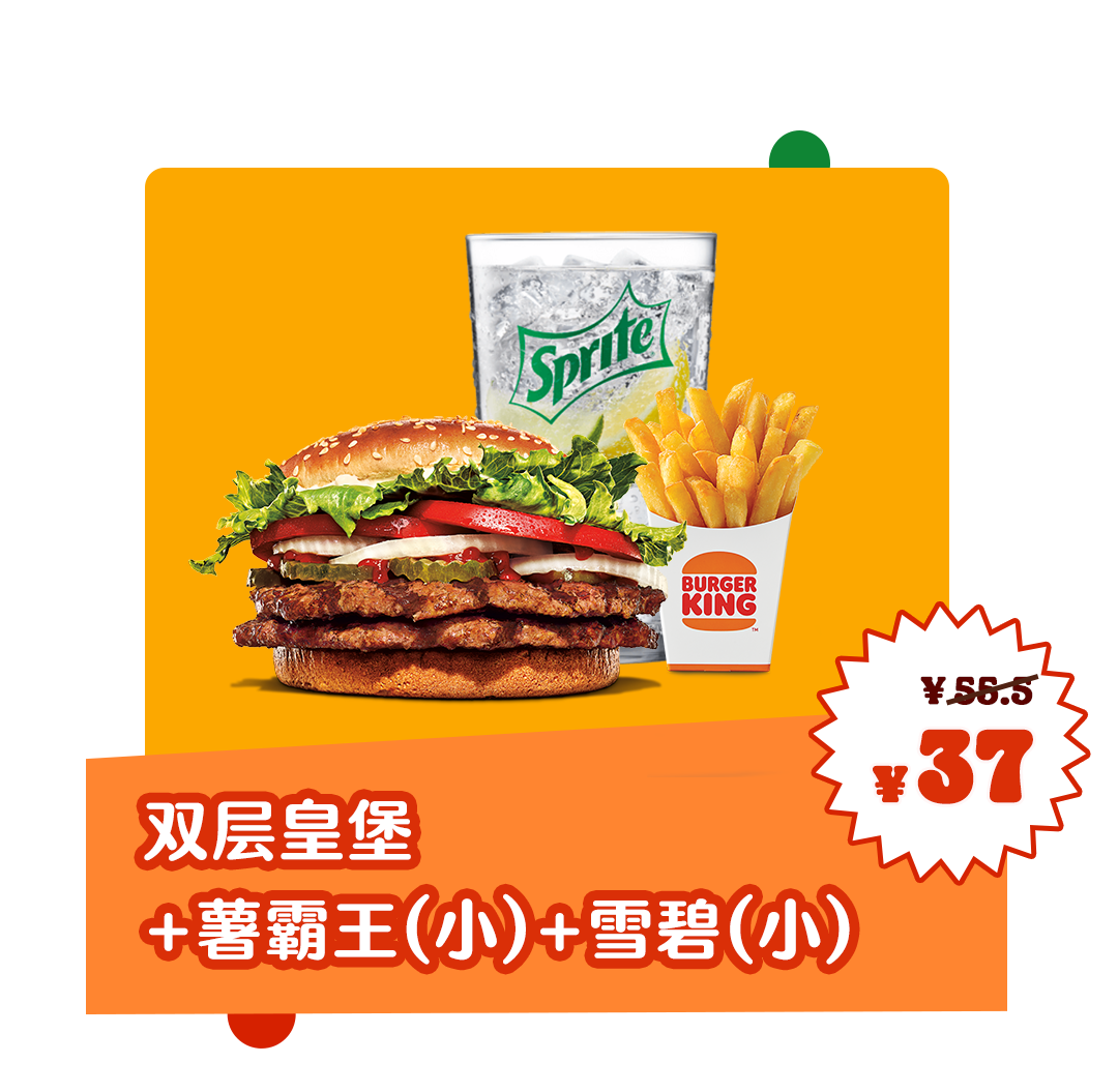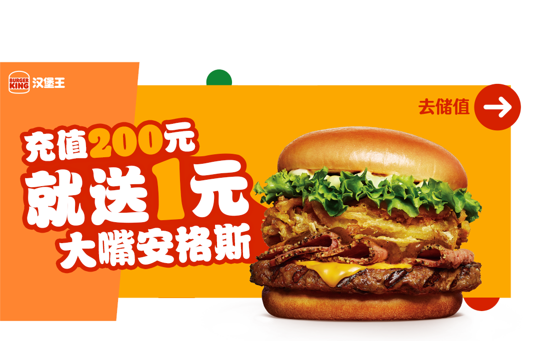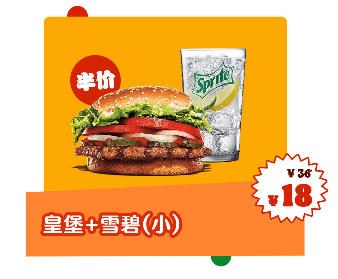 *非外卖渠道价格解释:图示如有划线价格,并非指原价,而是指不参加优惠活动情况下该产品在汉堡王指定门店销售的常规价格(或者指其中所含单品的常规单买价总和)或汉堡王门店建议零售价。除非图示另有解释,否则图示如有节省的金额或折扣比例,是与不参加优惠活动情况下在汉堡王指定门店单独购买该产品的常规价格(或者其中所含单品的常规单买价总和)或汉堡王门店建议零售价相比较。若需要查询当前门店销售的常规价格,可查看相应门店菜单或详询店员。