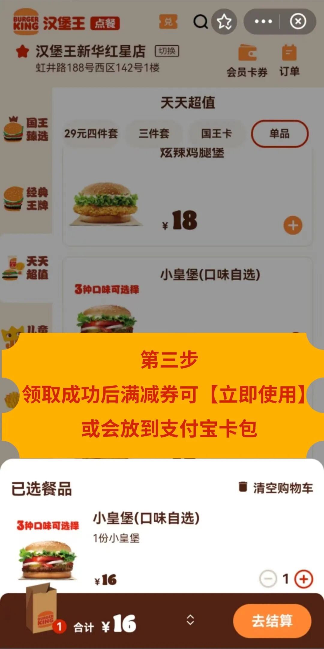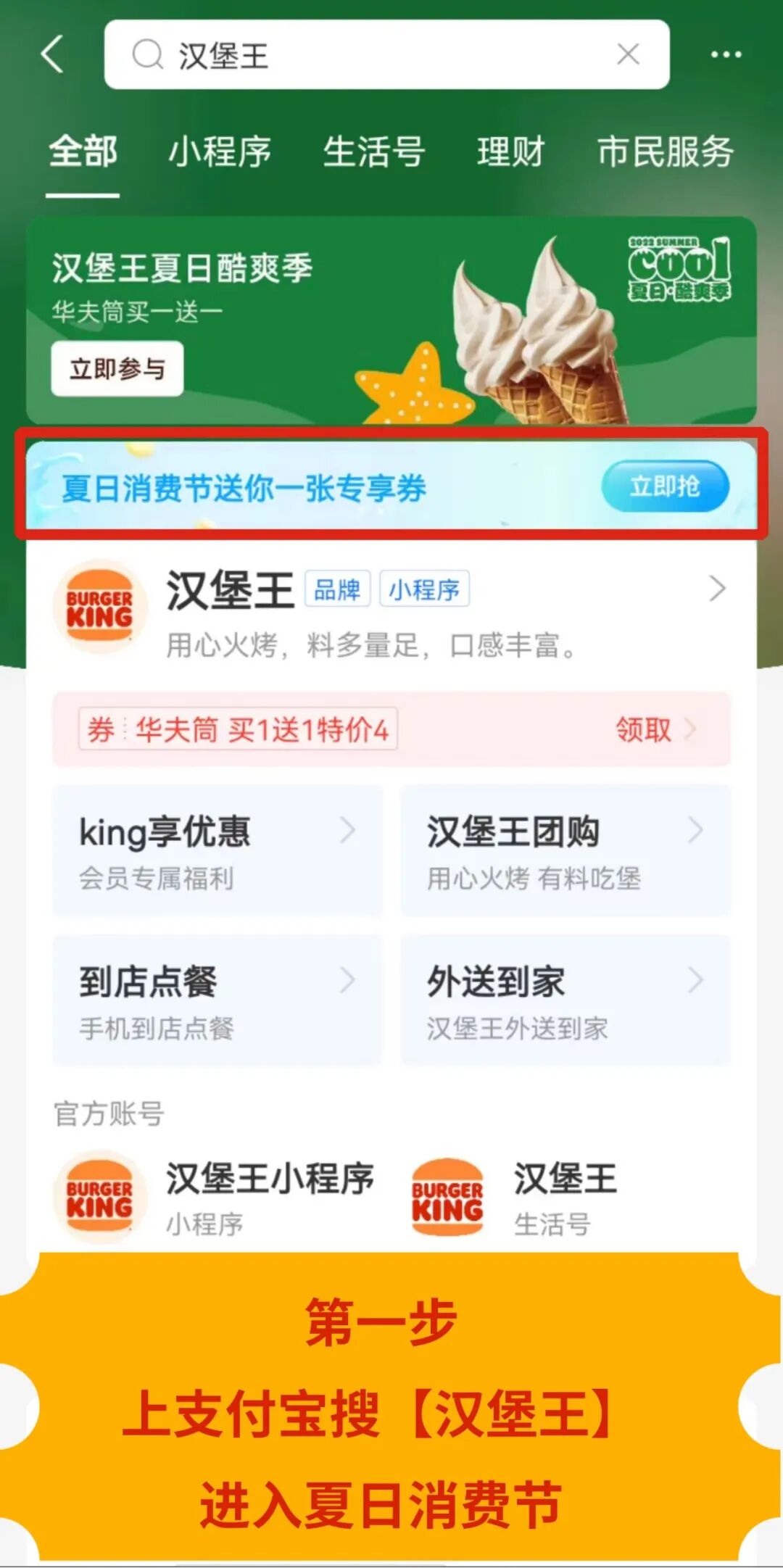 或上支付宝搜“汉堡王”