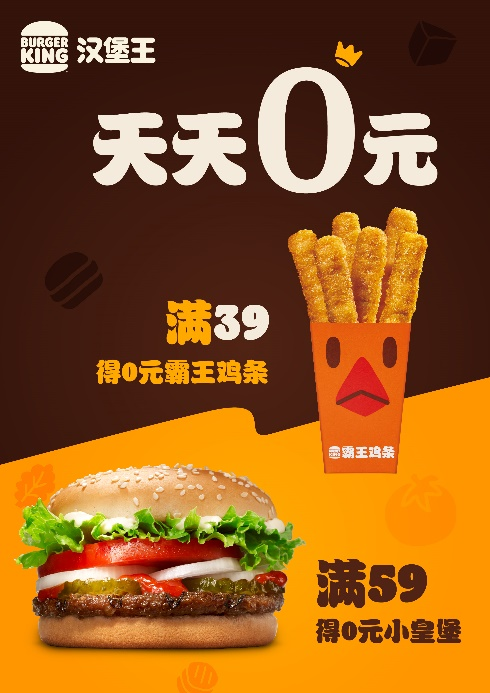 满39得0元霸王鸡条,满59元得0元小皇堡
