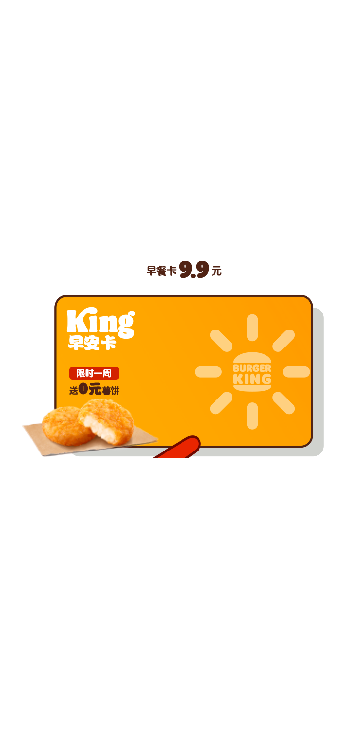 *非外卖渠道价格解释:图示如有划线价格,并非指原价,而是指不参加优惠活动情况下该产品在汉堡王指定门店销售的常规价格(或者指其中所含单品的常规单买价总和)。除非图示另有解释,否则图示如有节省的金额或折扣比例,是与不参加优惠活动情况下在汉堡王指定门店单独购买该产品的常规价格(或者其中所含单品的常规单买价总和)相比较。若需要查询当前门店销售的常规价格,可查看相应门店菜单或详询店员。