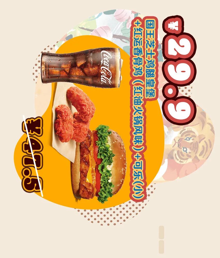*外卖渠道价格解释:图示如有划线价格,并非指原价,而是指不参加优惠活动情况下该产品在汉堡王外送销售的常规价格(或者指其中所含单品的常规单买价总和)。除非图示另有解释,否则图示如有节省的金额或折扣比例,是与不参加优惠活动情况下在汉堡王外送单独购买该产品的常规价格(或者其中所含单品的常规单买价总和)相比较。