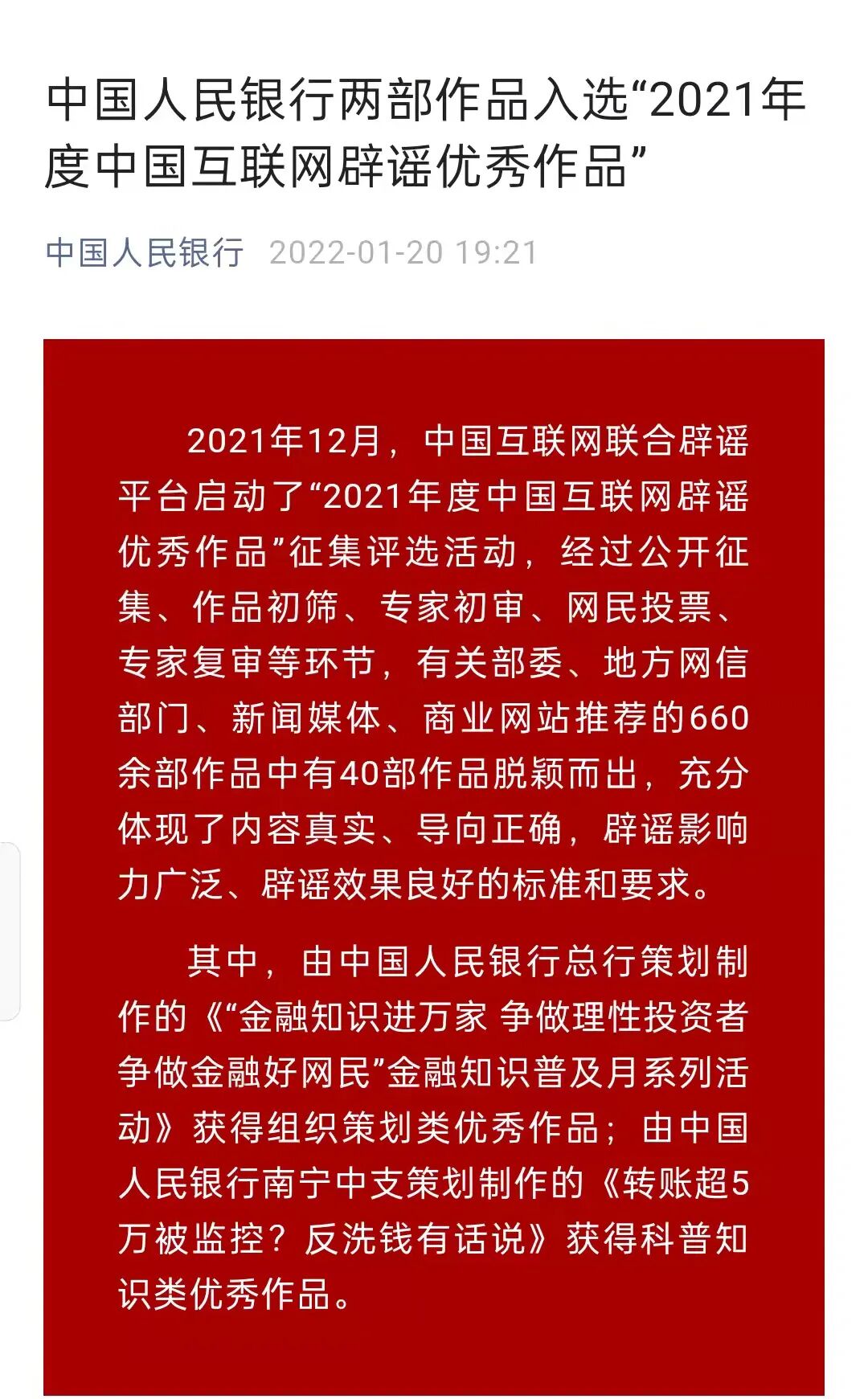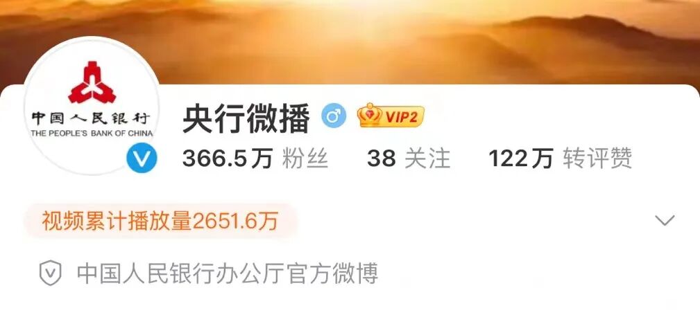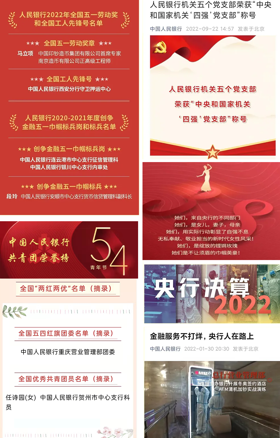其中,微博账号“央行微播”获评2022年度走好网上群众路线百个成绩突出账号。