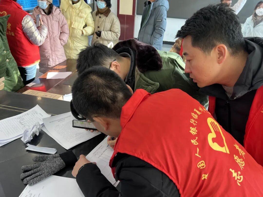 中国人民银行临夏州分行志愿者在灾区登记救援物资。