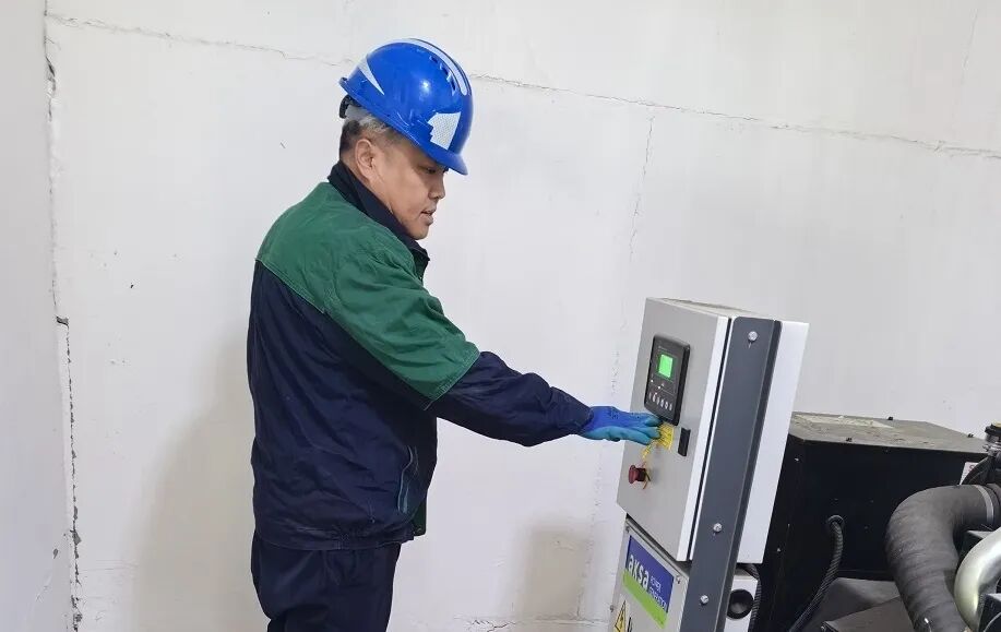 中国人民银行临夏州分行科技部门为积石山县支行检修发电机。