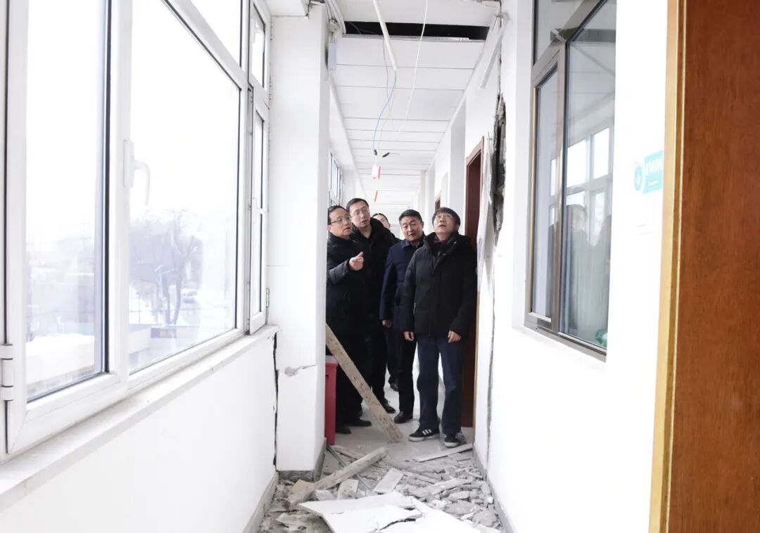 中国人民银行甘肃省分行工作组到积石山县支行查看受灾情况。