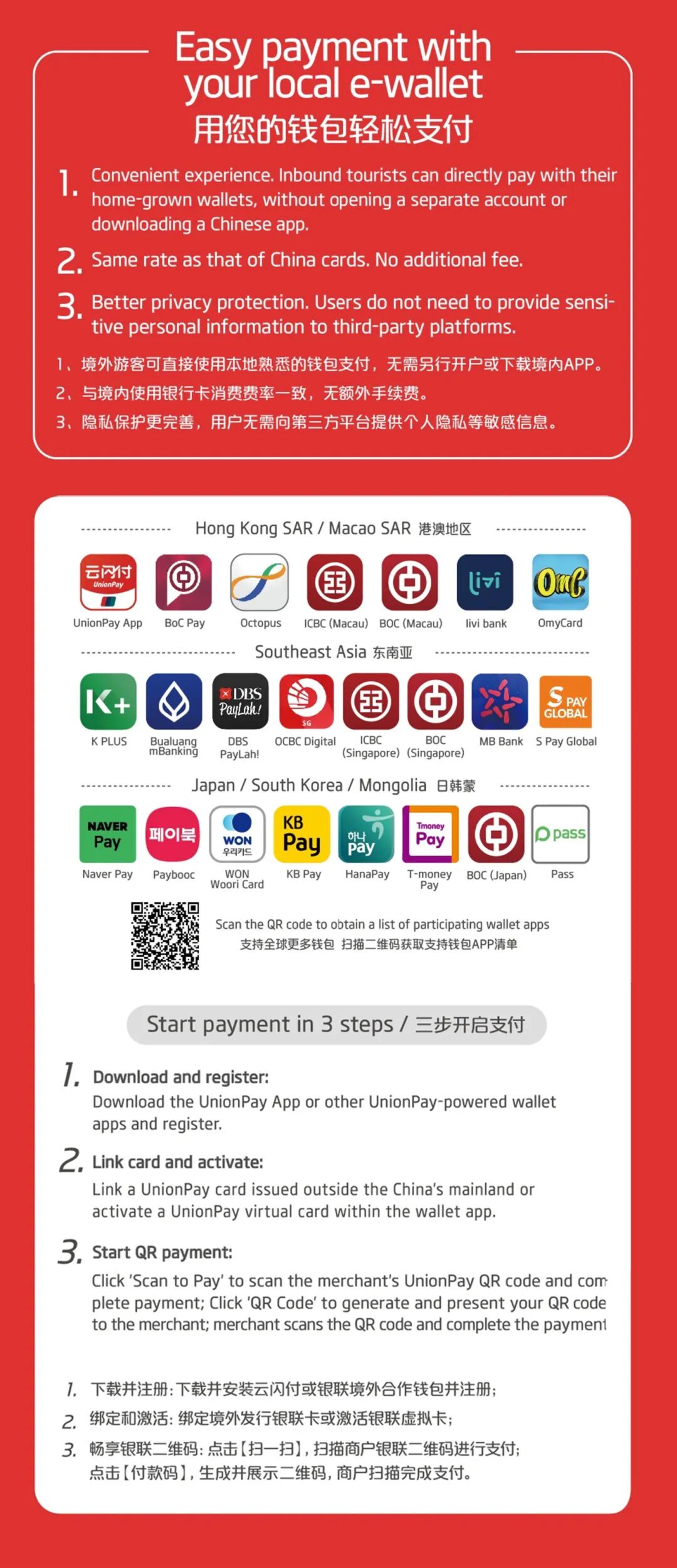 To enhance your payment experience in Ningbo, we provide you with a payment service guide covering different methods such as bank cards, mobile payments, RMB cash, e-CNY and bank account opening, creating a safe, convenient and inclusive payment service environment for you. We wish you a pleasant journey!