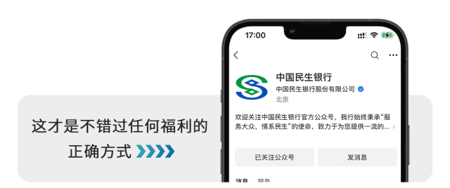 文章内容来源于公众号:中国民生银行 点此可查看原文。若涉及版权问题或存在侵权情况,请及时与我们联系,我们将第一时间进行删除处理。