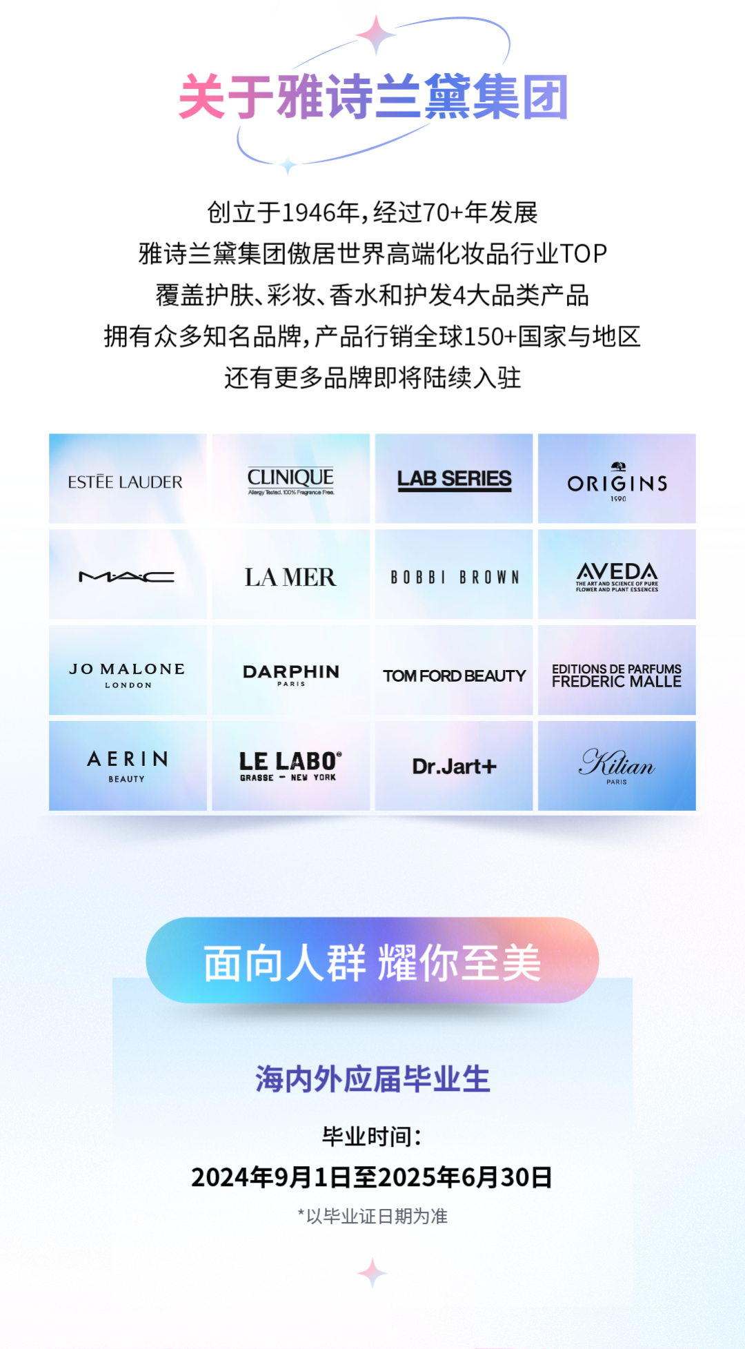 流光E彩 循夏臻美 | 2024雅诗兰黛集团暑期实习生招聘熠然开启