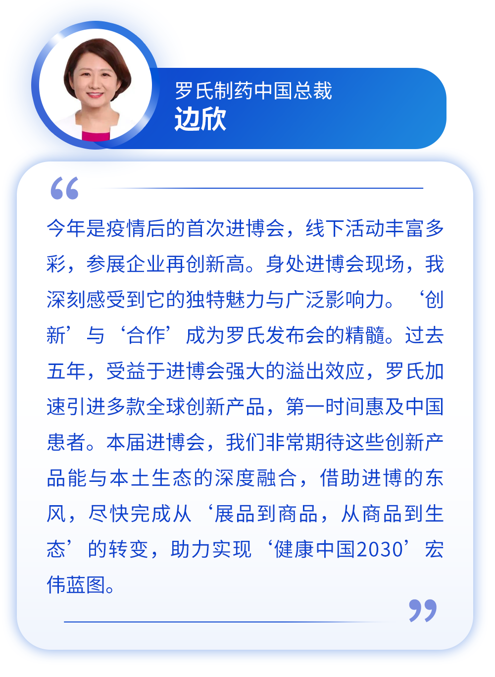罗氏制药中国与国药控股股份有限公司保持着悠久良好的合作,作为中国药品、医疗器械龙头分销商和零售商以及及领先的供应链服务提供商,彼此无论在产品的分销、供应链合作以及目标医院的准入、院外市场的合作等都有着深度的合作。为了持续充分发挥双方优势、提高竞争力,并共同进行市场拓展,双方通过进博舞台签署战略合作框架协议,携手合作实现以患者为中心的关爱与支持,为健康中国助力。