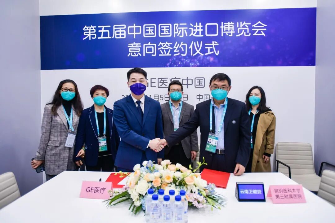 GE医疗与云南卫健委交易团进行签约,包括云南省第一人民医院、昆明医科大学第一附属医院、昆明医科大学第二附属医院、昆明医科大学第三附属医院、大理大学附属医院、普洱市人民医院。