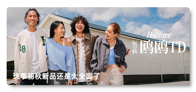 推荐:「前景左滑」查看不同模特穿着HollisterCo品牌系列服装的照片,带大家轻松玩转初秋风格。