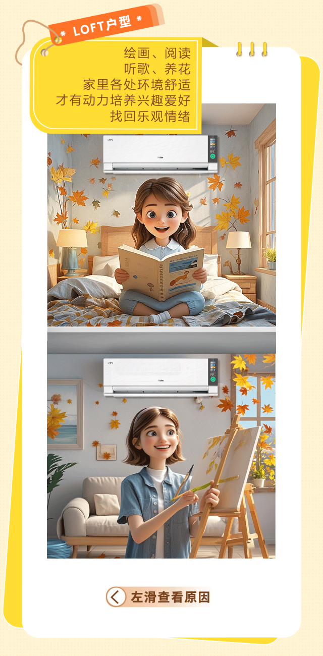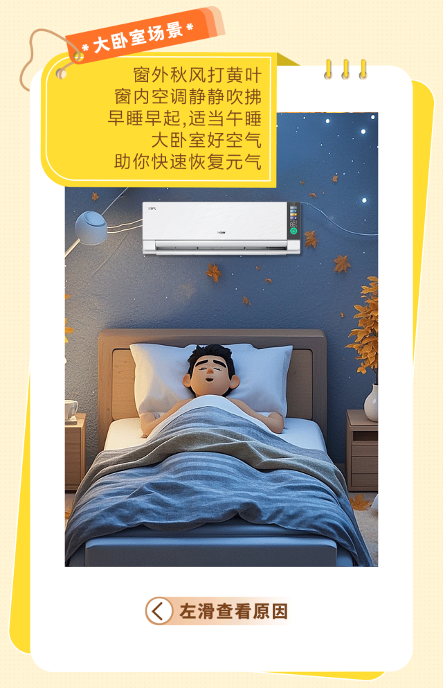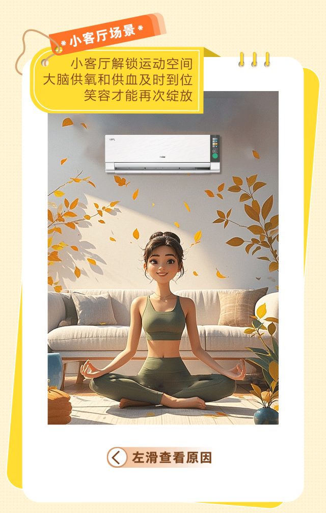 推荐:到了秋乏的时刻,海尔空调通过「点击展开」的交互模拟开启元气模式,引起大家的好奇心后,再引导大家「点击切换」查看海尔空调的各个使用场景,借此吸引更多客户购买海尔洗空气空调·G系列。