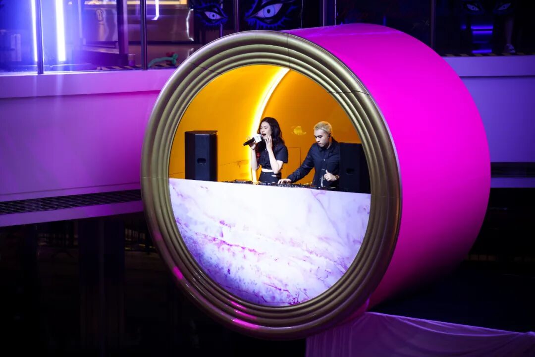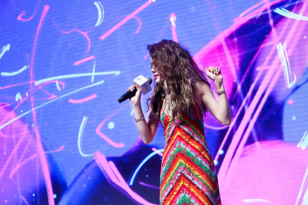 实力歌手容祖儿在上海恒隆广场华丽开嗓,《So Fresh》《烟霞》《隆重登场》三曲连唱,点燃第一波热潮,一气呵成的优雅唱腔引起现场欢呼不断,派对开场!