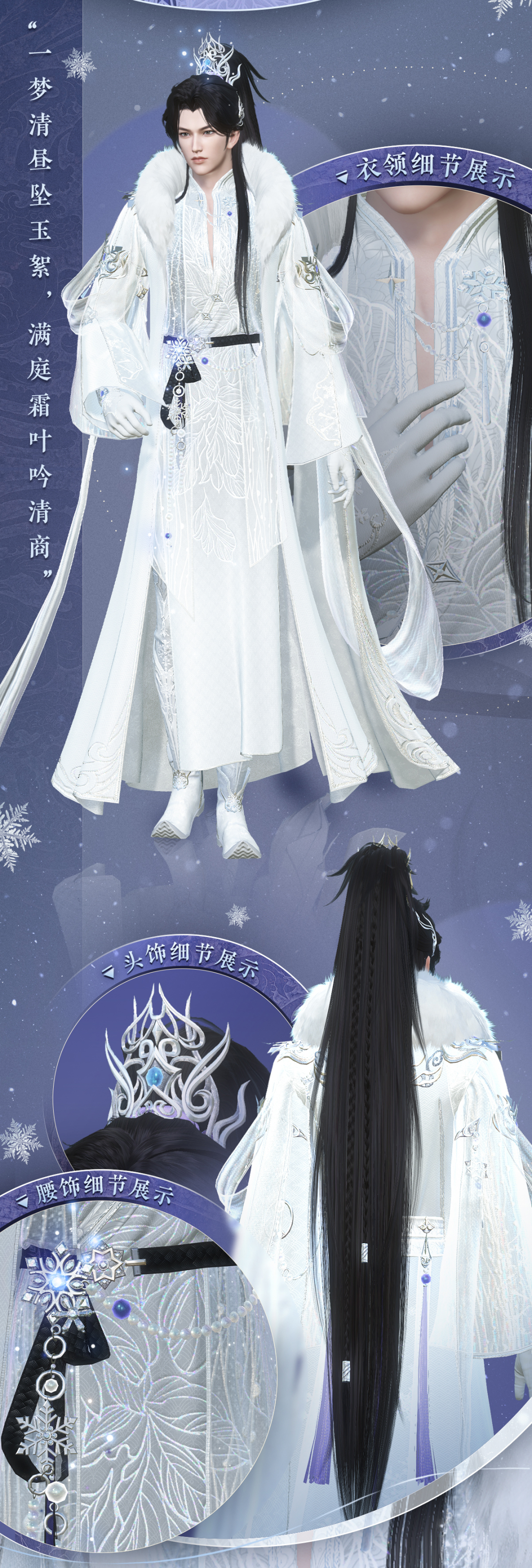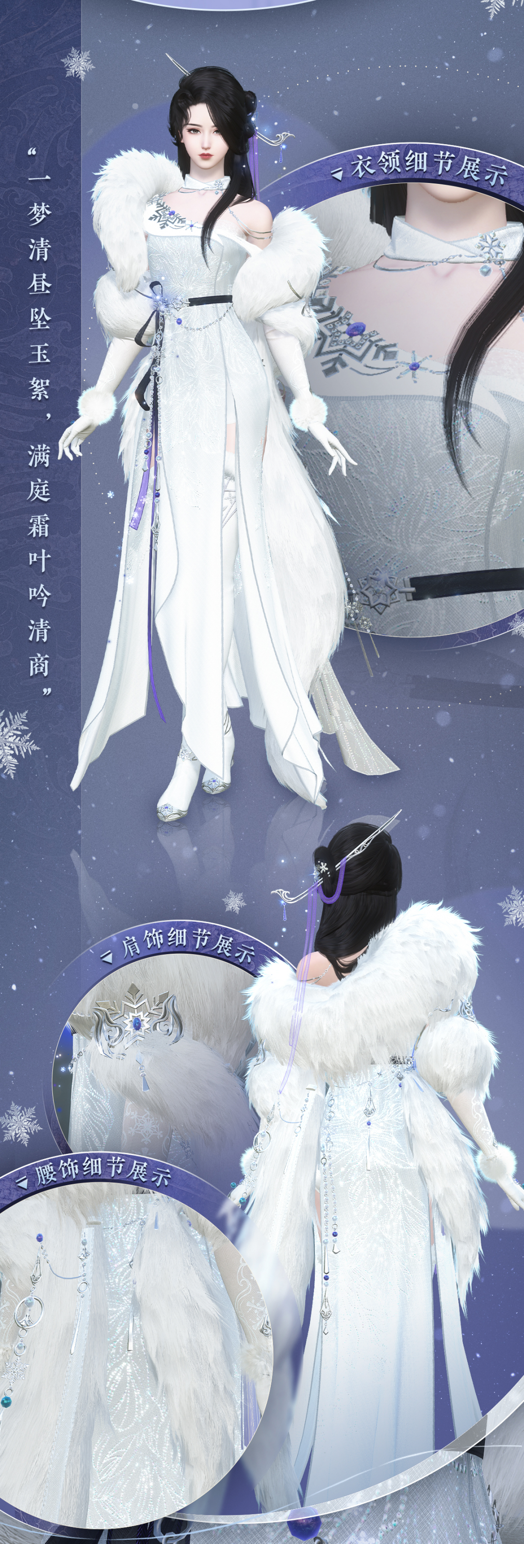 于是,霜雪一落,粉妆玉砌,便凝成了正式服全新冬装【素雪吟霜】!快和小寒一起去看看,这一套华服是如何“留下”江湖里的霜雪的~