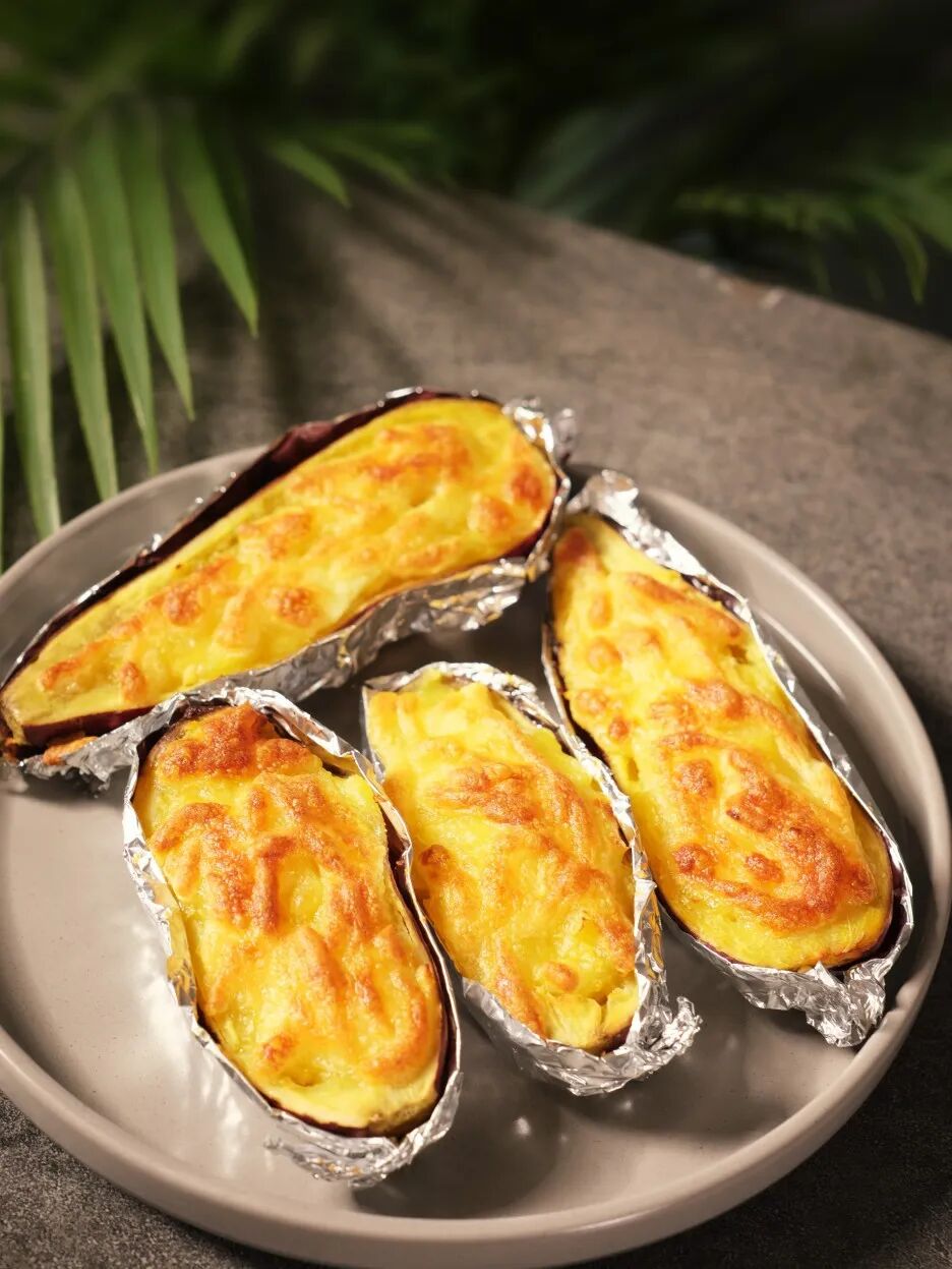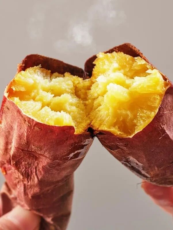 糖心红薯吃法多样,蒸烤后果肉金黄,细腻无筋,轻咬一口蜜汁像油一样流出,在舌尖化作软糯的红薯泥。