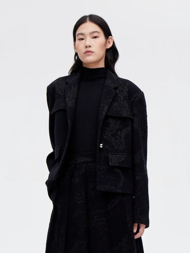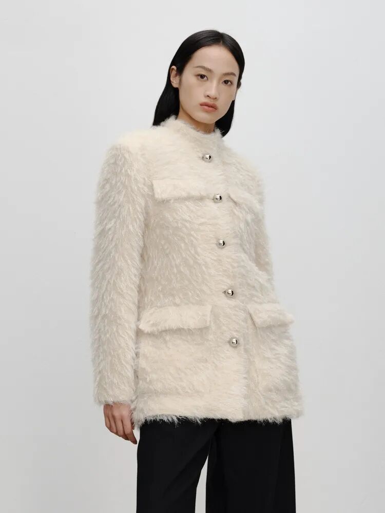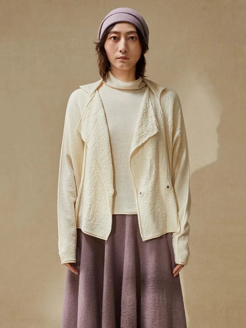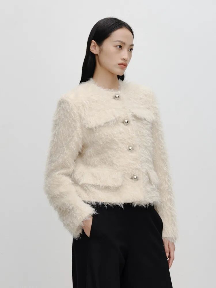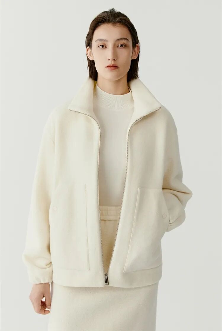▲绵羊毛翻领开衫外套¥3599,折后价¥3239