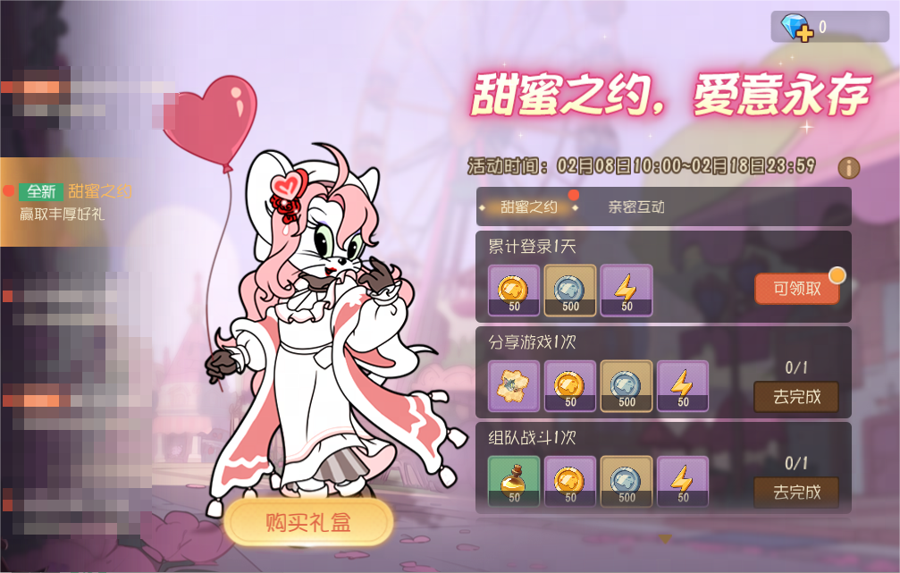 活动期间,完成指定任务即可领取冬季之约礼盒礼物、限定亲密度礼物、活跃度、金币等奖励。赠送或收到指定礼物,还可领取图多盖洛全新A级皮肤白色恋歌以及同名彩饰哦!