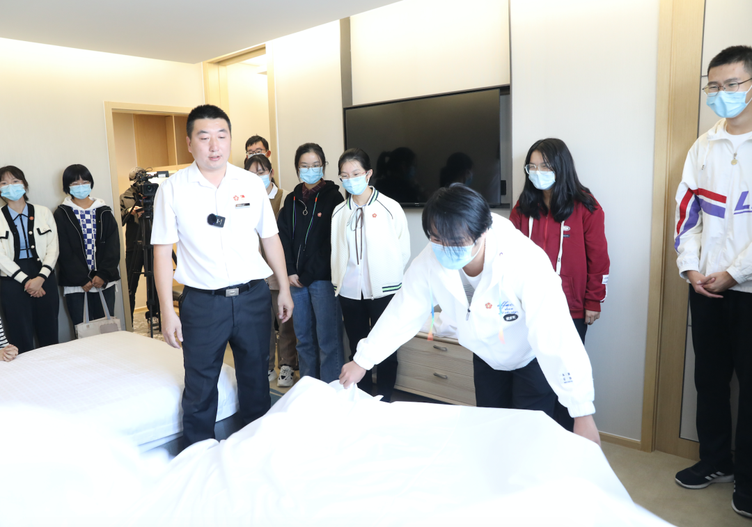 张兴惠老师亲手带我们体验了“甩床单”这一项小小的技能,给我最大的感受就是平凡的工作也可以很伟大,即使是像“甩床单”这样不起眼的事情,也蕴含着大大的门道。平凡的事情,也需要我们认真地去对待。
