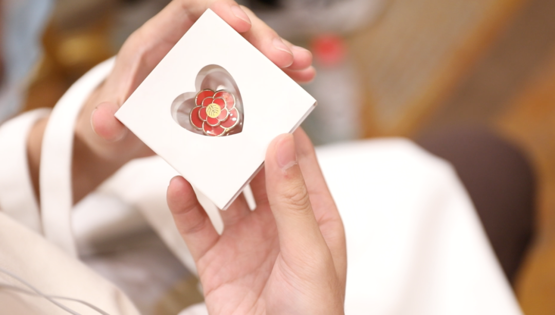 活动开始前,每位同学的座位上还摆有一朵精心准备好的小红花。小红花承载了“劳动最光荣”的寓意。听完劳动故事后,手中闪闪发光的小红花似乎有了更重的分量。