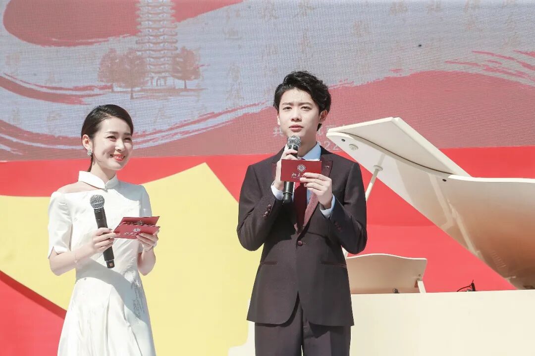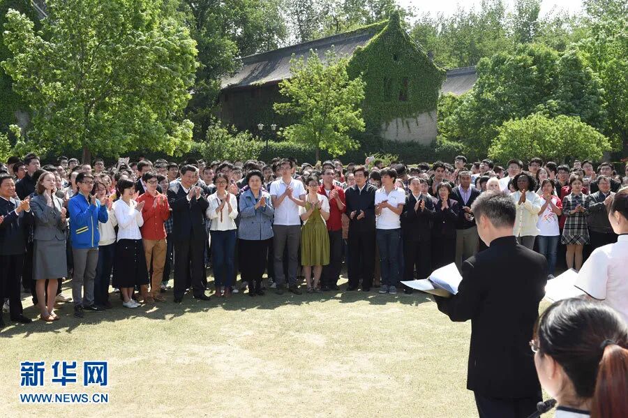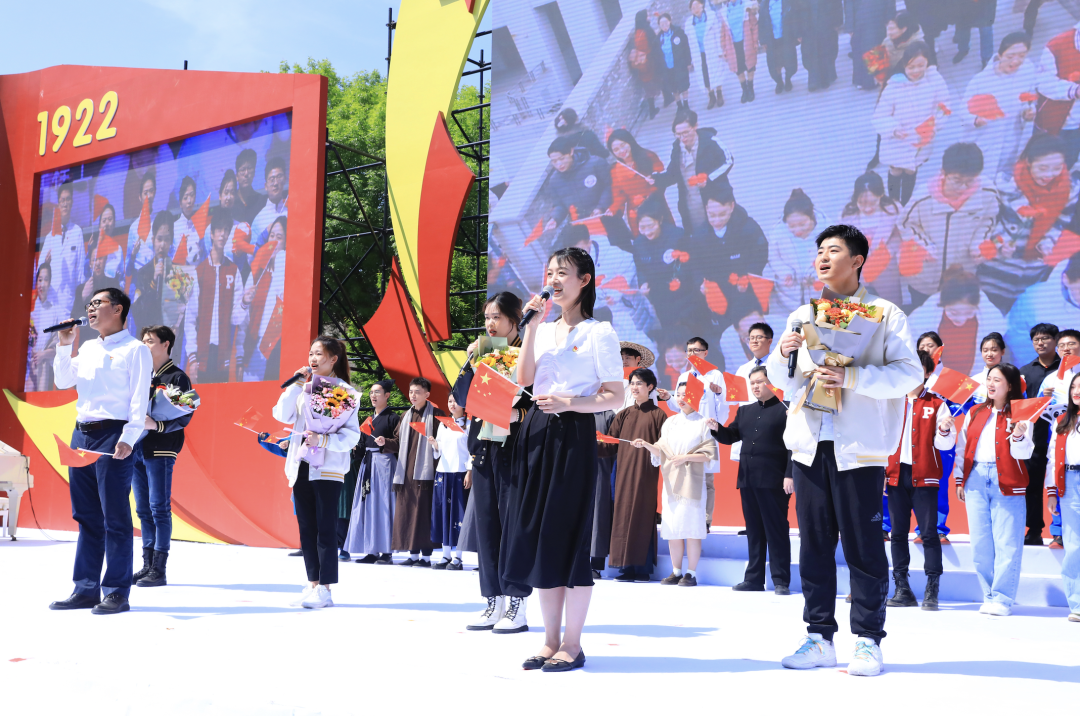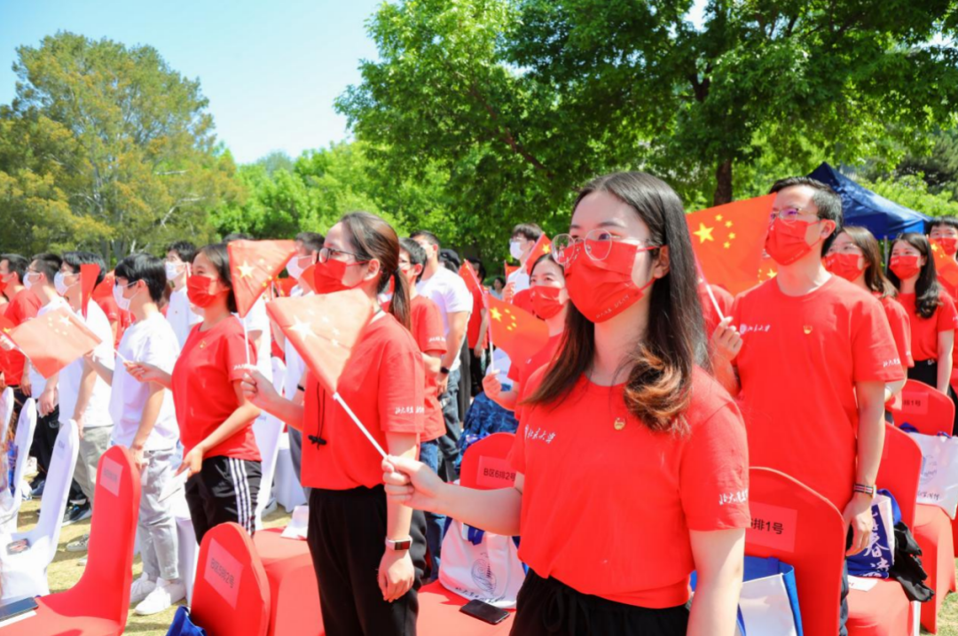 在未名湖畔振臂高呼:“团结起来,振兴中华!”
