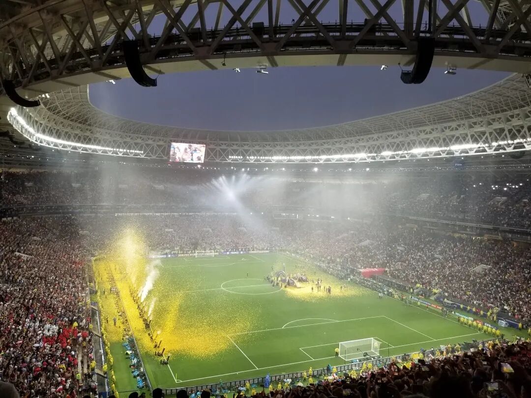 在现场看世界杯决赛是所有球迷的夙愿,虽然现场看球不能像看电视上转播那样看清每一次进攻和每一次防守,甚至几粒远端的进球是怎么产生的都看不清楚,只记得自己融入了那一场决赛的一波波人浪,融入了卢日尼基球场的一次次欢呼,融入了那个永生难忘的莫斯科雨夜。