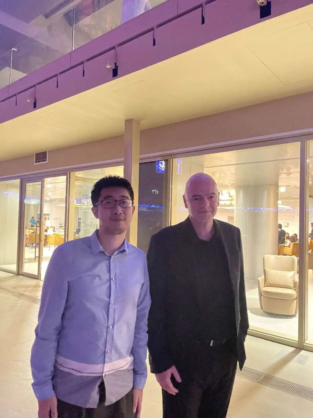 在卢塞尔球场与国际足联主席因凡蒂诺合影