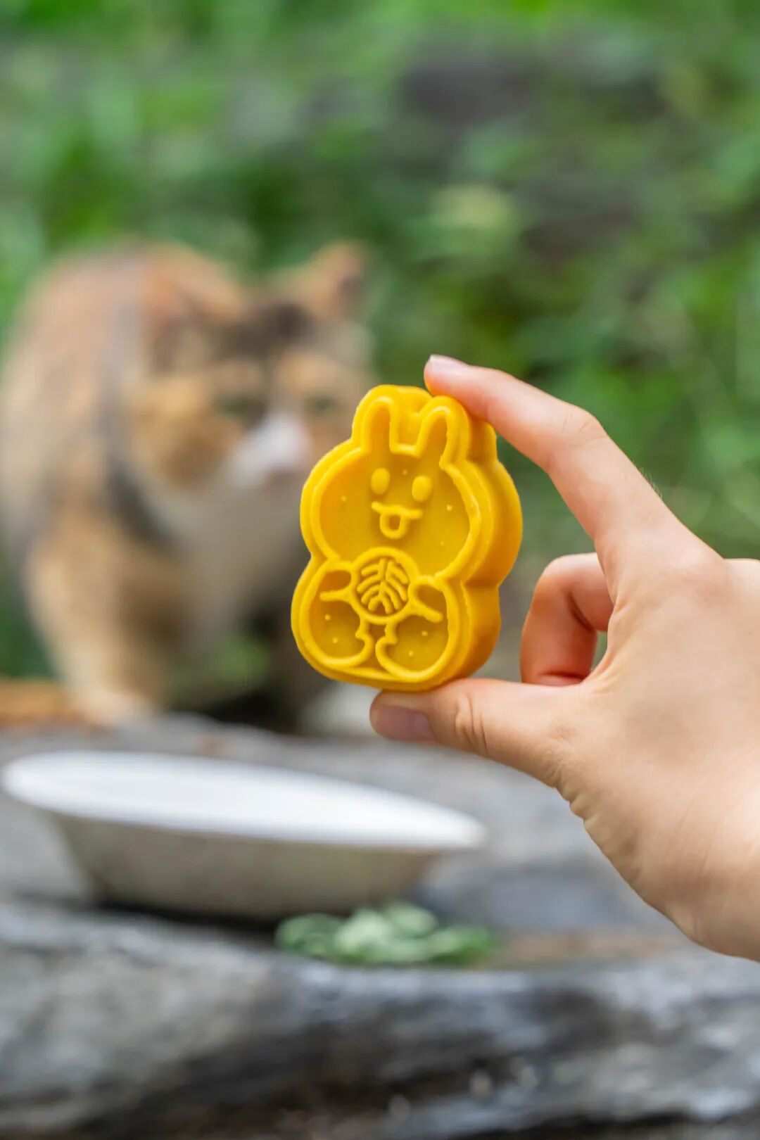 小北温馨提示:此次月饼礼盒将随茶包随机附赠杯垫、冰箱贴等餐饮周边产品,共限量400个,其设计灵感也来源于敦煌藻井的三兔共耳图案!