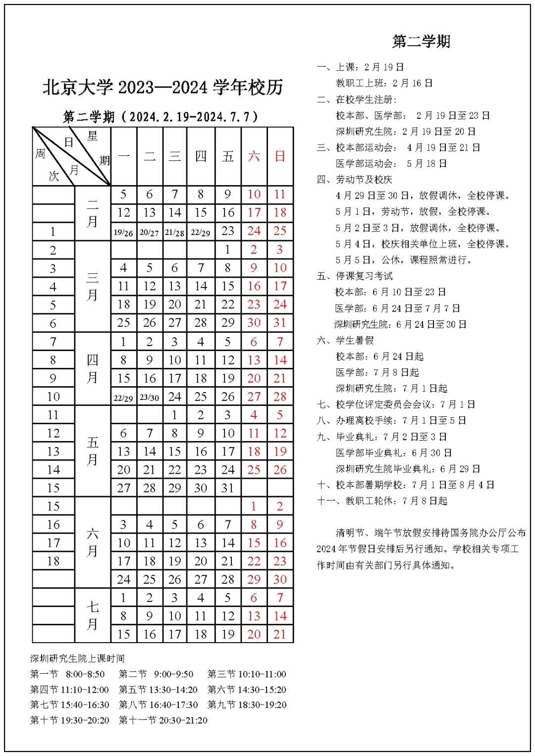 清明节、端午节放假安排待国务院办公厅公布2024 年节假日安排后另行通知。学校相关专项工作时间由有关部门另行具体通知。