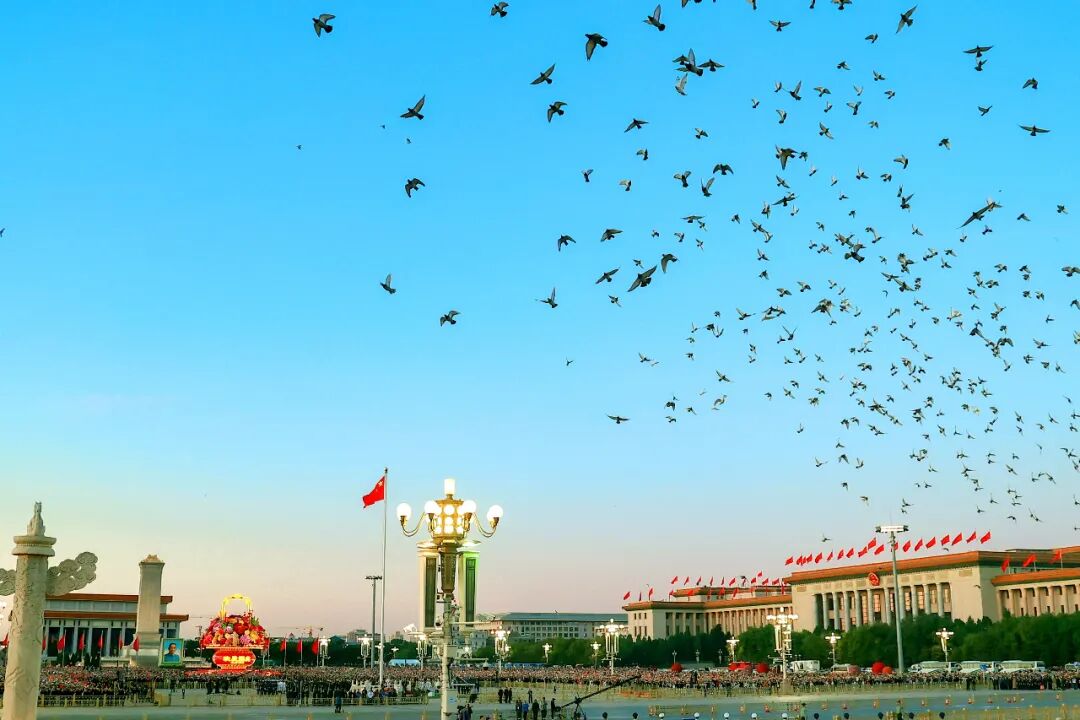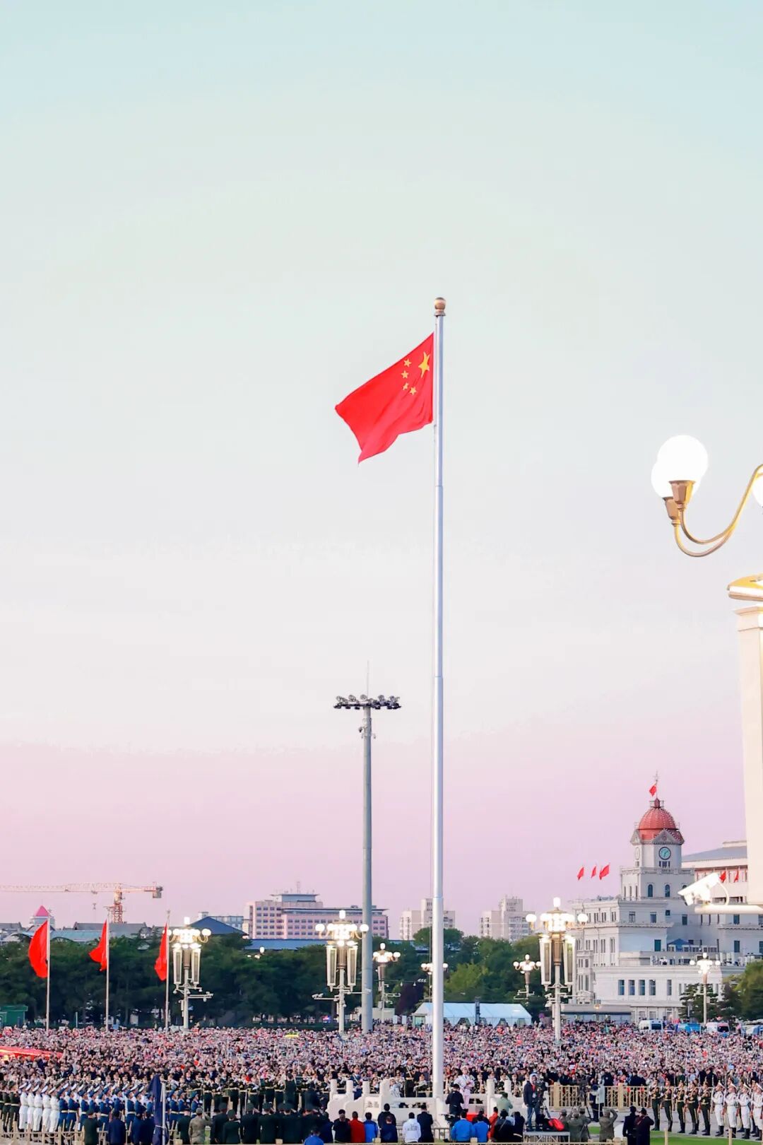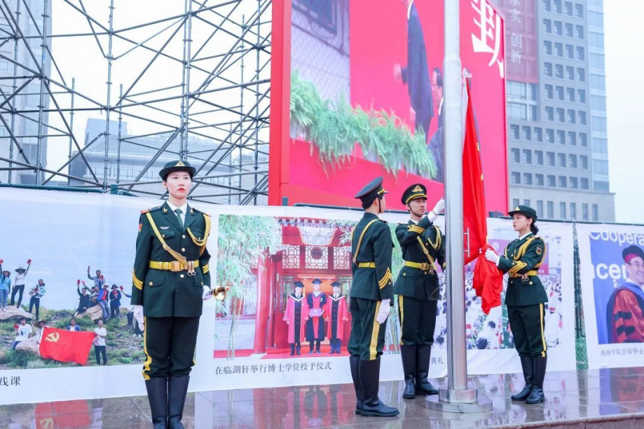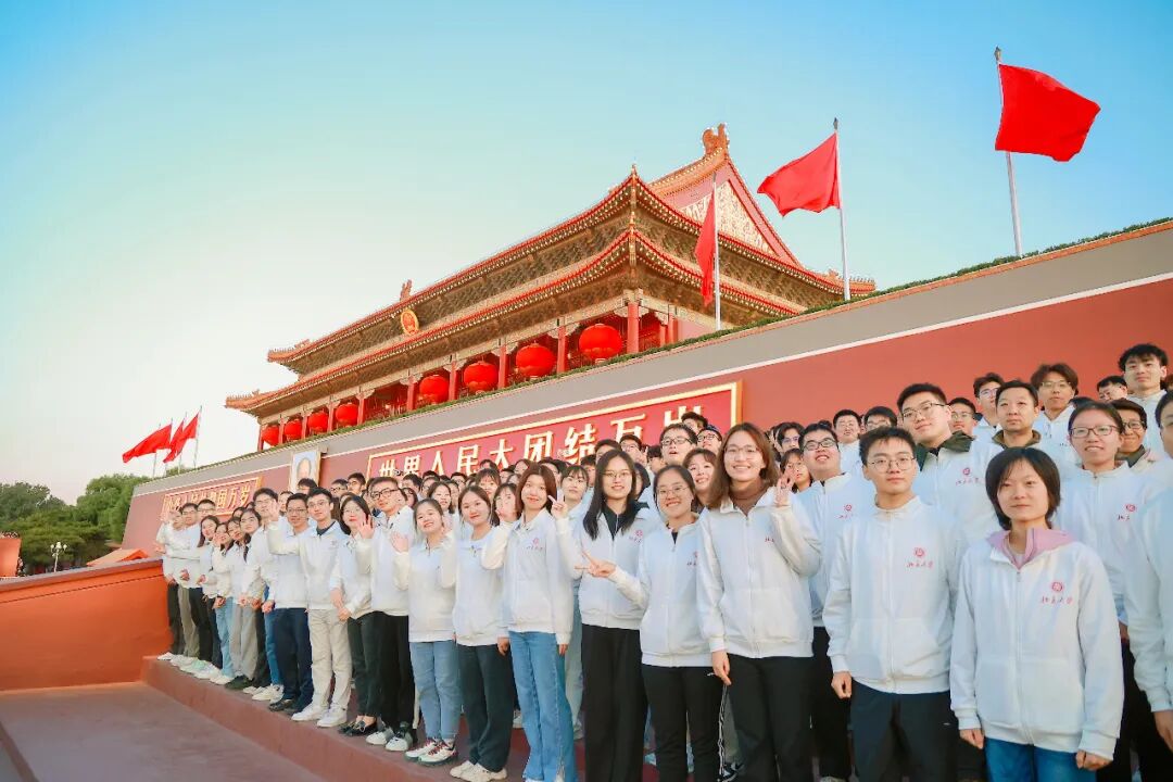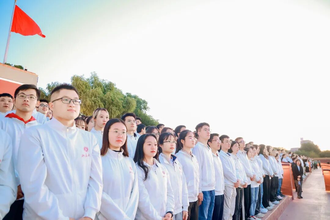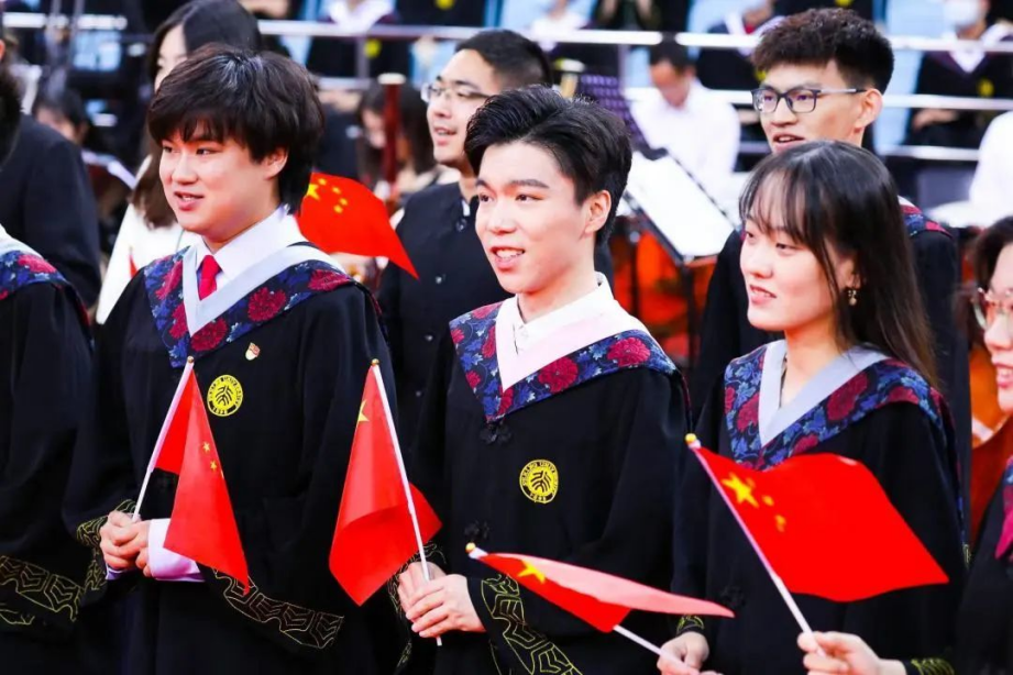 围绕五星红旗与“2023”图案合唱《燕园情》