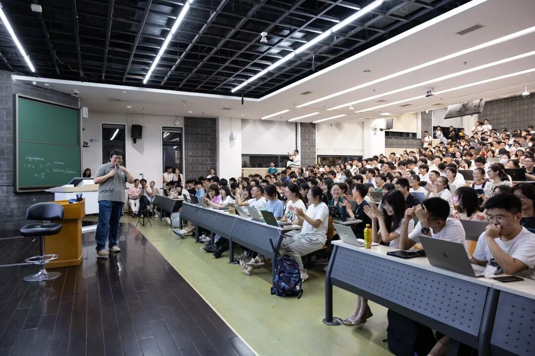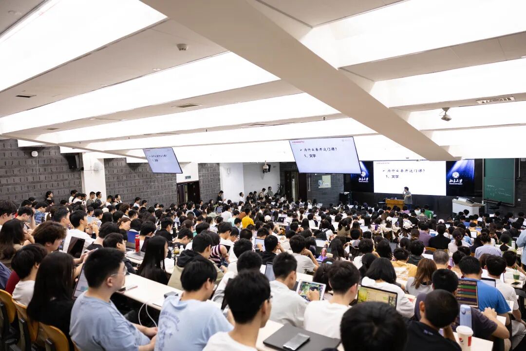 选课之初,这门课设定的限选人数为200人,而预选人数一度达到800余人。课程扩了一次容量,依旧没能满足同学们选课的全部需求。开课第一周,能够容纳380人的教室座无虚席,不得已又换到了更大的教室。课间,不少同学拿着手动选课表请求加入选课。教室过道上坐满了抱着电脑的同学们,甚至暖气片上都坐了人。