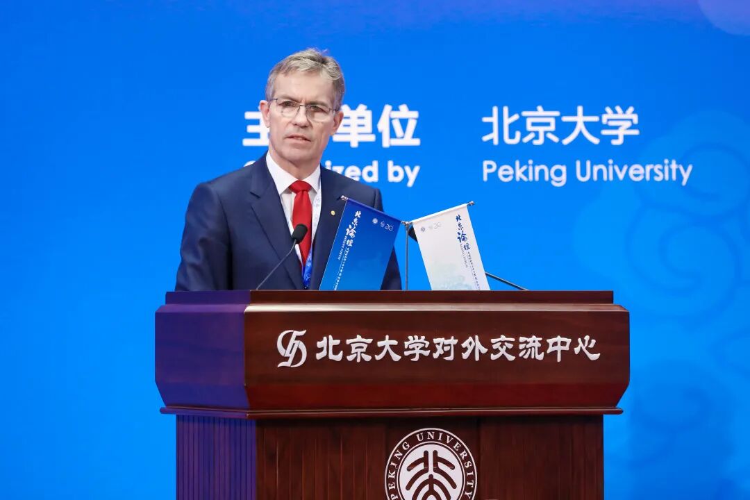 保罗·阿利维萨托斯在视频致辞中指出,芝加哥大学与北京大学拥有深厚的友谊,两校在包括医学、有机化学、天体气候研究、社会工作等众多领域有着广泛合作。他强调了学术研究团体在解决全球问题时所展现出的团结和开放性,期望世界各国能够更加开放地分享知识、从彼此的经验中学习并共同寻求解决方案。