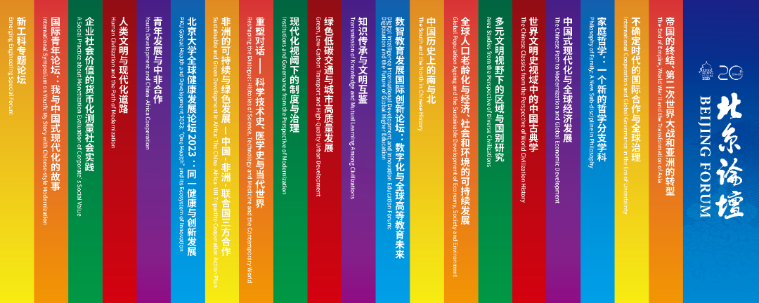 北京论坛创办于2004年,迄今已举办20届,来自世界80余个国家和地区的7000多位政要和知名学者参与了这一学术盛会。20年前,在首届北京论坛上,来自世界五大洲 30 多个国家和地区的学者率先发出“文明的和谐与共同繁荣”的倡议,致力于推进文明交流互鉴、和合共生。20年来,北京论坛始终坚持回应人类面临的共同问题,推动世界教育学术交流,深化全球人文科技合作,开辟国际交往新格局,为人类文明进步凝聚力量。今年是北京大学建校125周年,同时被确定为“国际战略年”,学校坚持以开放促一流、与世界共发展,谱写“双一流”建设的新篇章。