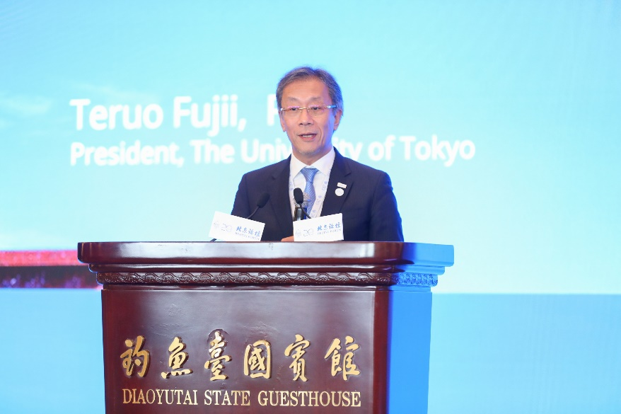 第十四届全国政协副主席、民盟中央常务副主席、中国科学院院士王光谦,第十届、十一届全国人大常委会副委员长、第十二届全国政协副主席、中国科学技术协会名誉主席、中国科学院院士韩启德,教育部党组成员、中央纪委国家监委驻教育部纪检监察组组长王承文,北京市委常委、教育工委书记游钧,中国日报社社长兼总编辑曲莹璞,新华社副总编辑任卫东,人民日报社政治文化部主任张毅,中日友好协会常务副会长程永华,北京大学党委书记、校务委员会主任郝平、北京大学校长、中国科学院院士龚旗煌等校领导班子成员,以及日本前首相鸠山由纪夫、联合国教科文组织前总干事伊琳娜·博科娃(Irina Bokova)、美国洛杉矶加州大学校长毕杰恩(Gene Block)、日本东京大学校长藤井辉夫、匈牙利罗兰大学校长薄慕往(Borhy Lászlo)、澳大利亚阿德莱德大学校长彼得·霍伊(Peter Hoj)、韩国崔钟贤学术院院长朴仁国、韩国 SK 集团前副会长金在烈等国际嘉宾出席开幕式。开幕式由北京大学副校长、教务长王博主持。