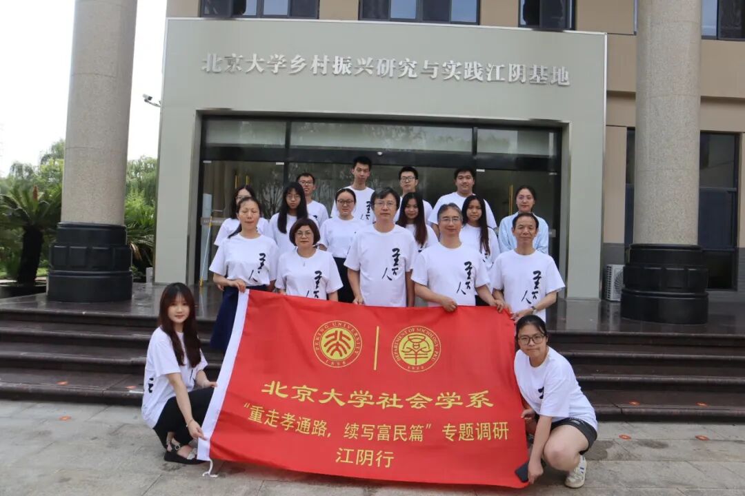 下基地、进田野,今年暑期,北京大学社会学系的同学们在卢晖临、刘爱玉、刘能、熊跃根四位教授和刘圆圆、卢燕璇两位博士生助教的带领下来到“海外珠犀、人间鱼蟹”的江苏江阴,在这个中国式现代化的典型实践地开启了田野调查实践课程,展开了为期10天的深入调研。江阴,临江望海,是全国县域经济发展的一面旗帜。改革开放以来,江阴在乡村振兴上持续开展了一系列探索和实践。而这里,也是中国著名社会学家、人类学家、民族学家吴文藻的故乡,与北大社会学有着深厚的联系。北京大学乡村振兴研究与实践江阴基地就建设在这里。