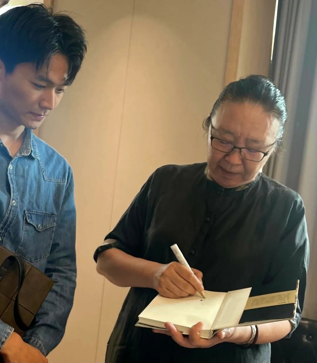 △戴锦华(右一)给胡明昊签名
