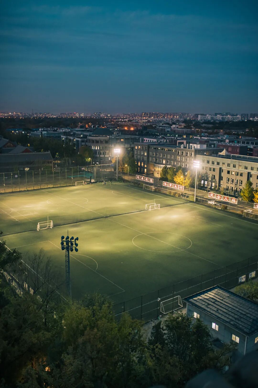 刚下过雨的五四体育场与晚霞撞了个满怀。零星的水珠还在跳跃,水面的波纹不乏灵动,倒影中的世界如梦似幻,一时间竟让人分不出虚实。静候雨滴同时落下的那一瞬,快门的意义,在此刻得以实现。