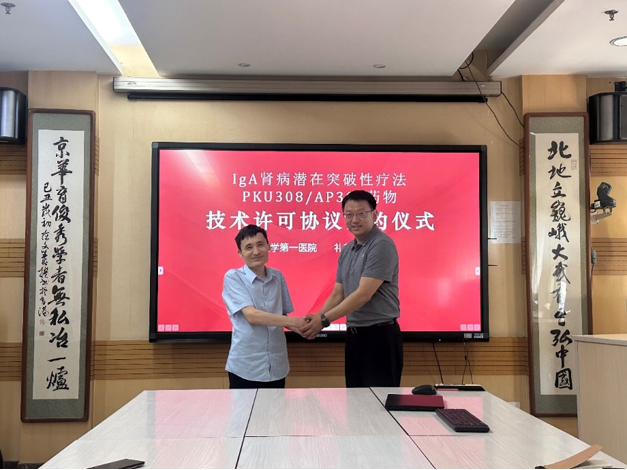 吕继成课题组针对性地开发了在研药物PKU308,有望成为I类新药(first-in-class)。该在研药物为针对致病性IgA1特异性长效蛋白酶,能够迅速完全的清除肾脏沉积的IgA和补体成分,从而快速达到完全的免疫学缓解。而目前来自欧美国家开发的新药仅仅能达到部分蛋白尿缓解和延缓进展,并不能完全满足临床需求。PKU308针对发病的关键环节—致病性IgA复合物,通过蛋白酶进行特异性降解,从而达到快速完全的缓解。因此,与其他新药具有显著的差异性和领先性,有望成为I类新药(first-in-class)。目前该在研药物以最高可达人民币2.07亿的金额,独家授权给礼邦医药进一步进行开发和商业化。院企双方共建了北大-礼邦上海-礼邦美国联合实验室以推进药品研发。目前已经完成实验室规模验证,有望于2024年由CDMO完成临床批次生产。后续将由礼邦申请开展临床试验。该药物的研发有望开发出源自我国、特异性治疗IgA肾病的原创I类新药,大幅度降低IgA肾病的尿毒症和肾衰的风险,并带来重大的经济效益。