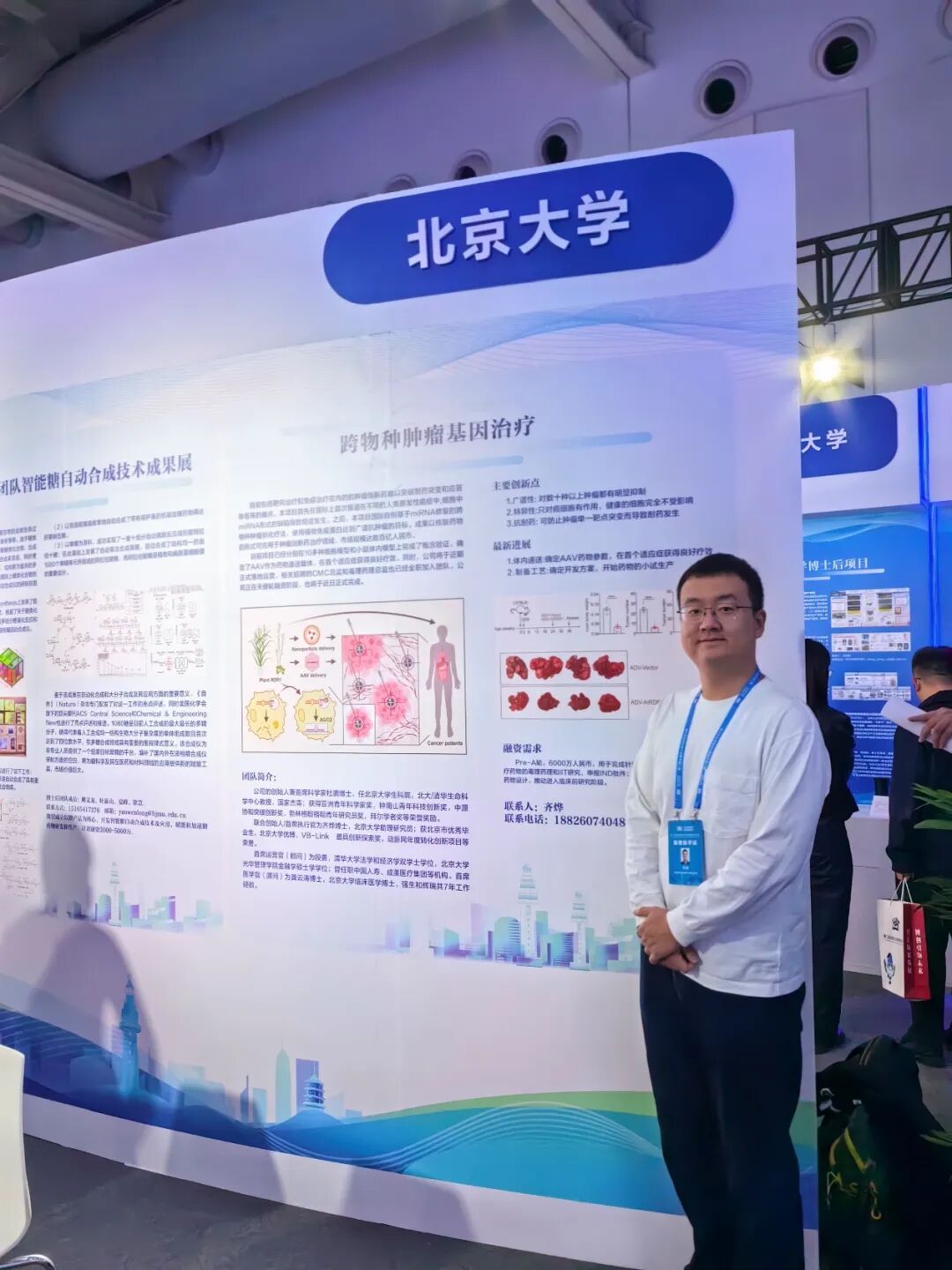 2023年,齐烨再度参加了中国国际大学生创新大赛。作为整个项目的统筹者和负责人,从商业计划书的撰写到每一次路演和答辩,齐烨都精心准备。同一实验室同一团队的两位队友,生命科学学院2020级直博生丁力和前沿交叉学科研究院博士后李诗雨(参赛时为在读博士生)帮助其打磨细节,北京大学创新创业学院的老师们通过辅导给予了齐烨极大的支持。