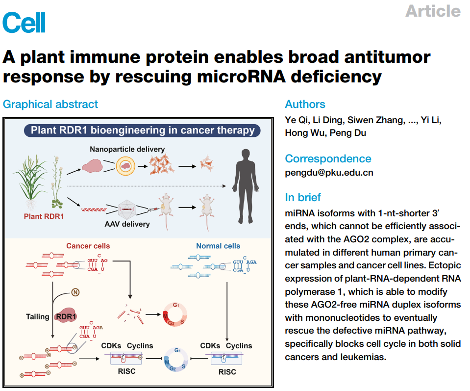 只要找到一个植物来源的基因对应的免疫蛋白,并且可以修复肿瘤细胞中特有的小RNA分子的结构缺陷,就能恢复整个个体内基因调控网络的平衡,达到广谱抗癌的目标。