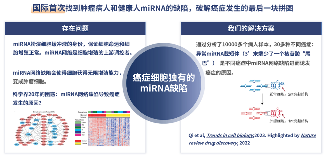 在项目进展过程中,通过大数据挖掘,齐烨团队在导师的指导下,首次报道了肿瘤患者和正常人群之间的小RNA结构缺陷,并进一步验证了缺陷的泛癌种性。“这是我们开辟的一个全新领域,miRNA网络异常导致细胞获得无限增殖能力变成肿瘤细胞,这一发现已经被学界和工业界发现了接近20年,但背后的机制仍然不清楚。”正是这个发现,开启了齐烨通过植物免疫蛋白挽救miRNA缺陷的研究之路。