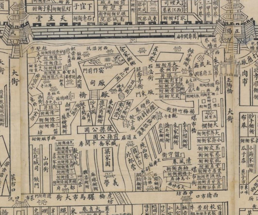 此“漫游指南”可用于当下,也可穿越到明清,或者民国年间。请用别出心裁的路线串联起北京的若干城市空间和日常生活细节,如胡同、公园、寺庙、学校、茶楼、戏院等。需根据历史文献与文学作品撰写精当的文字说明,并附上相应的地图、照片、社会调查等。