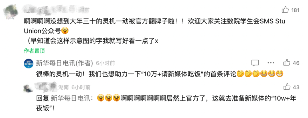 △参与文章编辑的同学在新华每日电讯报道后留言