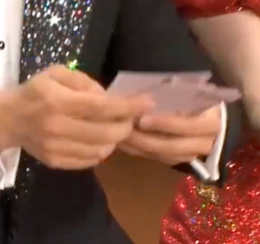 镜头捕捉到插入过程中,原本位于底部的牌面花纹被另一张牌覆盖,也就是说,尼格买提并未按要求将两张牌放入中间位置,从而导致他最终匹配的失败。