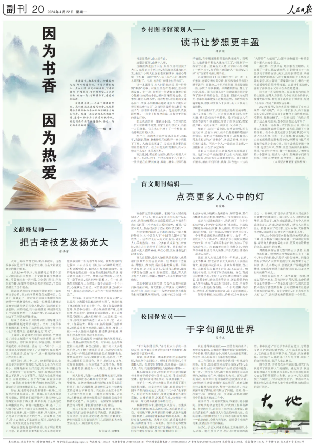 在《人民日报》发表文章《因为书香,因为热爱》