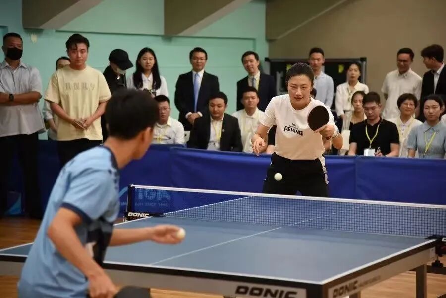 2023年12月,为纪念中美“乒乓外交”52周年,丁宁随北京大学乒乓球队访美。在现场,丁宁与美国各界乒乓球爱好者进行友谊赛,共话新时代下中美“小球转动大球”的未来图景。