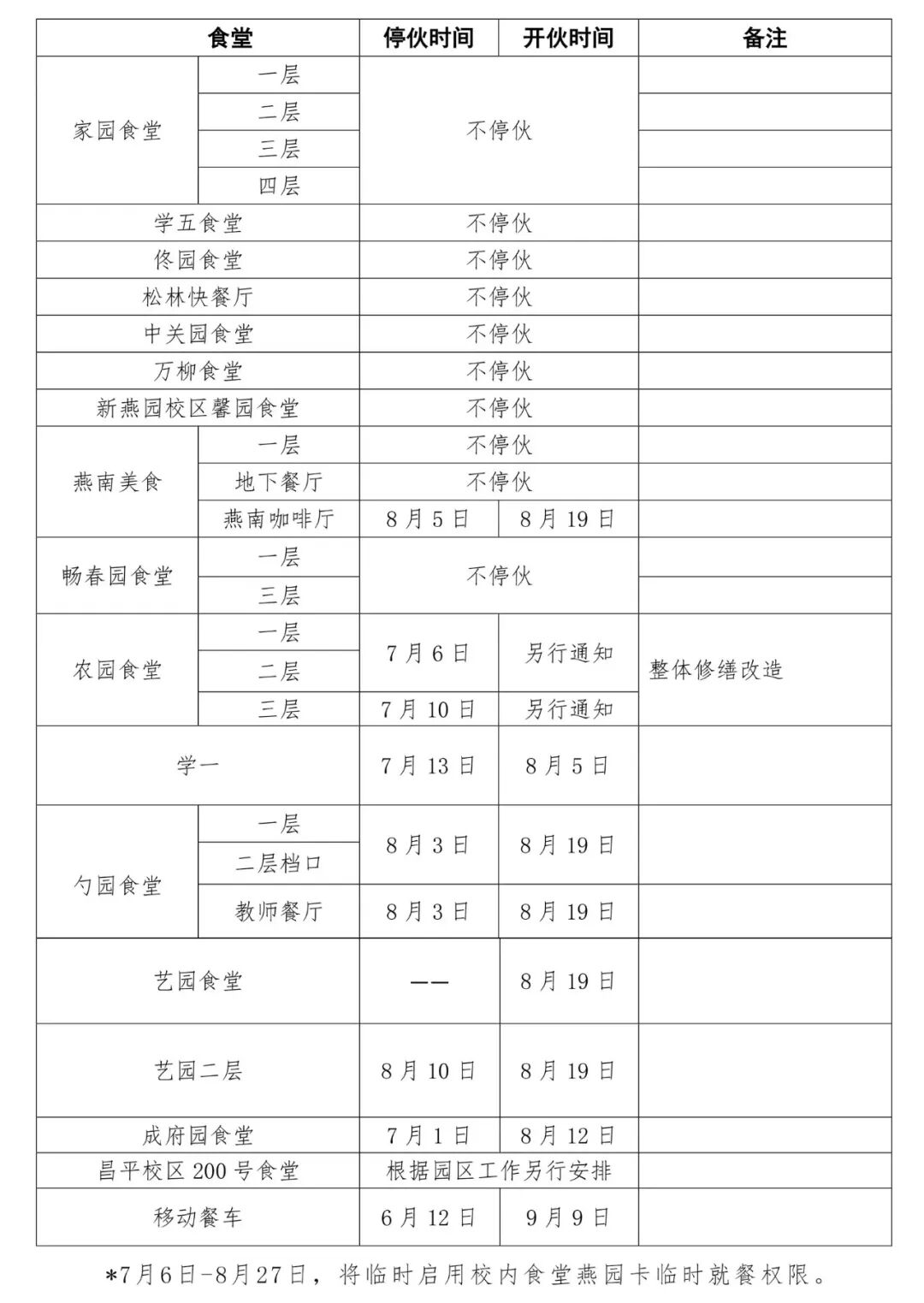 来源 | 燕园微后勤、万柳大家庭、北京大学餐饮中心、北京大学校内信息门户、北京大学图书馆、新校区管委办、北京大学医学部、北京大学深圳研究生院