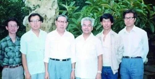 1986年9月,与王作富(左三)和高铭暄(右三)先生的合影,从左至右依次为:陈兴良(左一)、赵秉志(左二)、姜伟(右二)、周振想(右一)