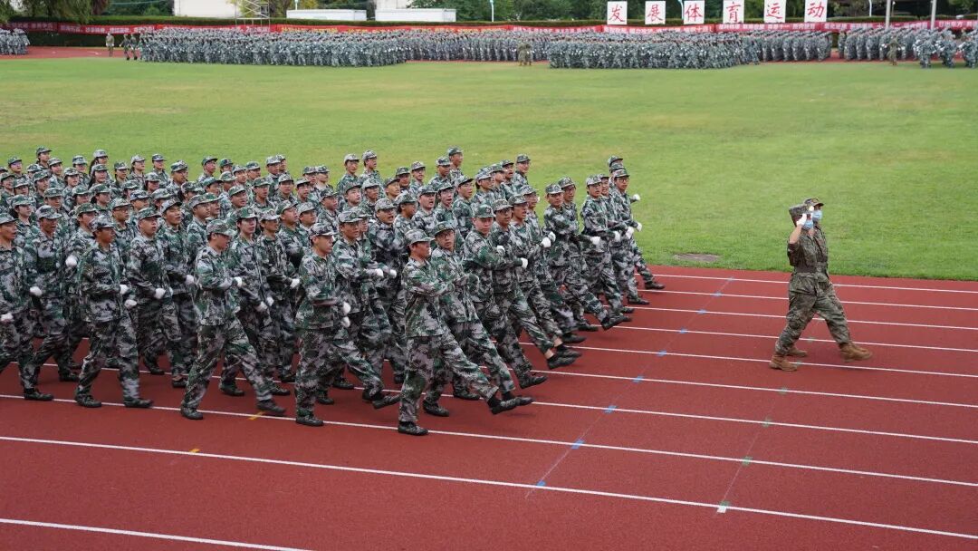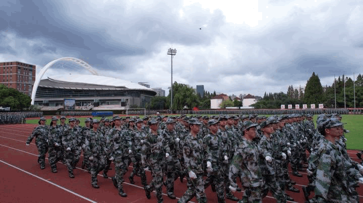 炎炎夏日,太阳烘烤着大地,脚底传来的热浪,额头上豆大的汗珠顷刻落下,但双手依旧贴紧裤子,抬头挺胸站直。军训里有“计密智安,毫不手软,金瓯无缺,你好世界”的嘹亮口号;军训有同学们自信骄傲的“十六连”。