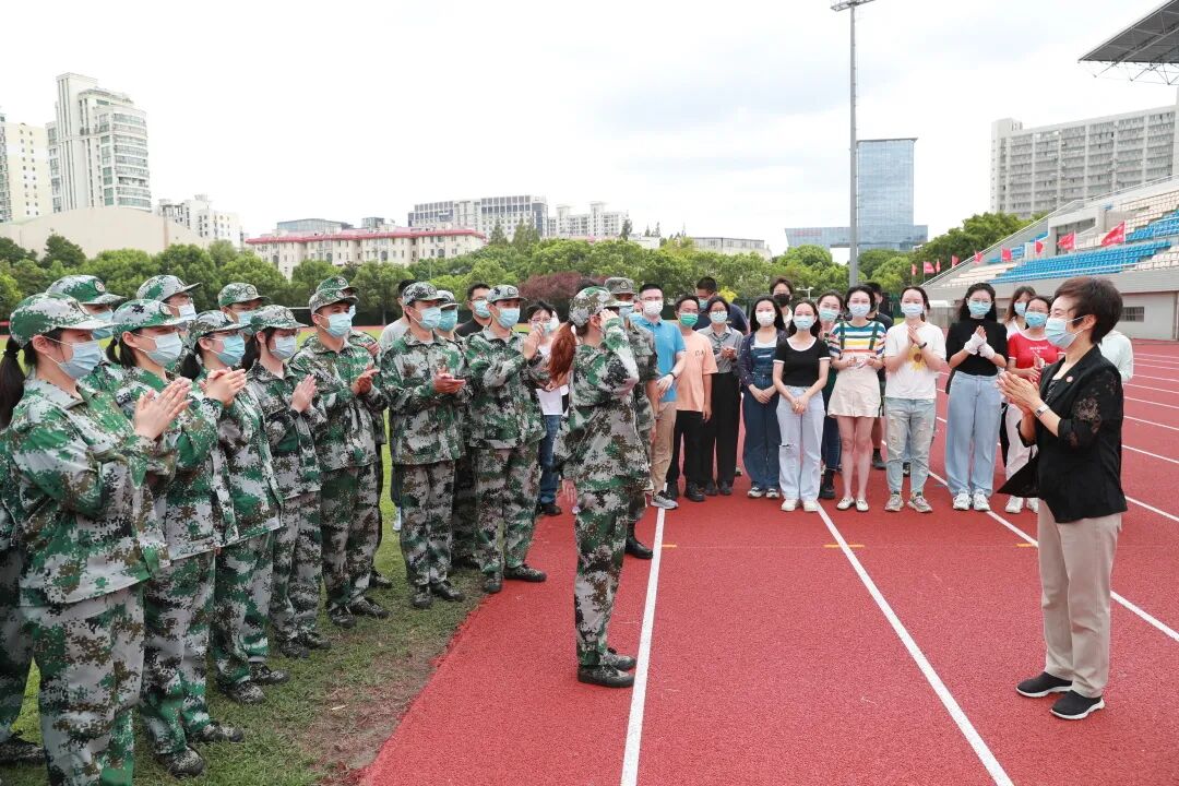 军训汇演结束后,焦扬再次对全体承训教官们表示衷心感谢和诚挚慰问。她表示,在教官们的精心带教下,军训会操圆满结束,复旦大学完成党和国家“军训育人”的任务,向党和人民交上了一张漂亮的答卷。