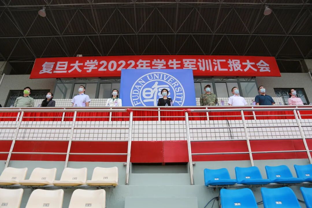 复旦大学党委书记焦扬,部队带队领导刘勇上校,复旦大学党委副书记、军训团政委尹冬梅,复旦大学党委常委、上海医学院党委副书记、军训团副政委徐军以及相关部处负责人出席军训汇报大会。现场,焦扬宣布军训汇报大会开始。